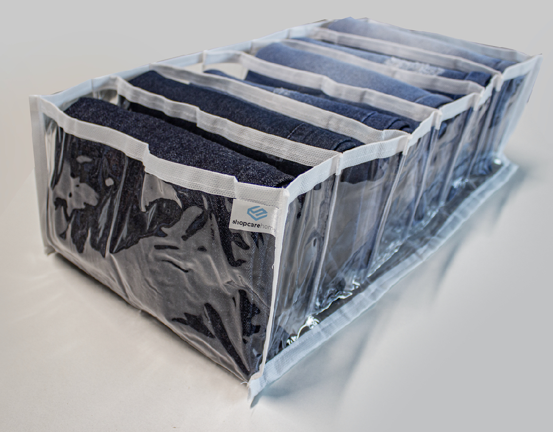 COLMEIA ORGANIZADORA FABRICADA EM PLÁSTICO TRANSPARENTE COM ACABAMENTO EM VIÉS BRANCO DE TNT.
