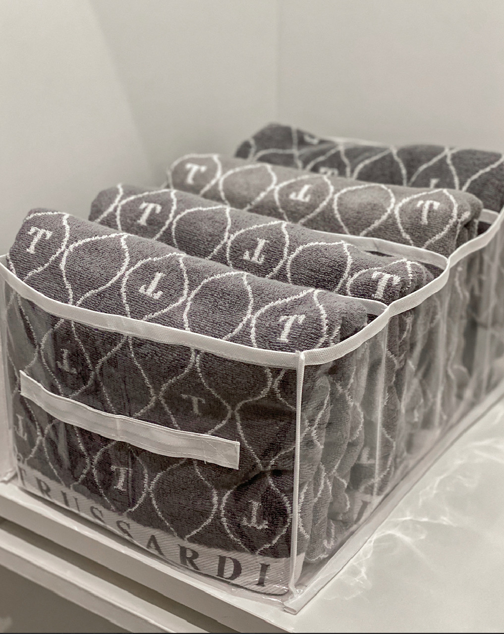 COLMEIA ORGANIZADORA FABRICADA EM PLÁSTICO TRANSPARENTE COM ACABAMENTO EM VIÉS BRANCO DE TNT.