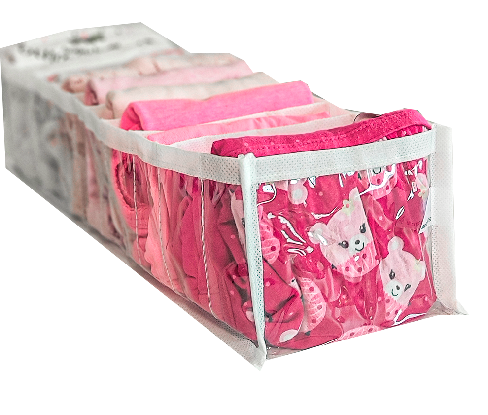 COLMEIA ORGANIZADORA FABRICADA EM PLÁSTICO TRANSPARENTE COM ACABAMENTO EM VIÉS BRANCO DE TNT.